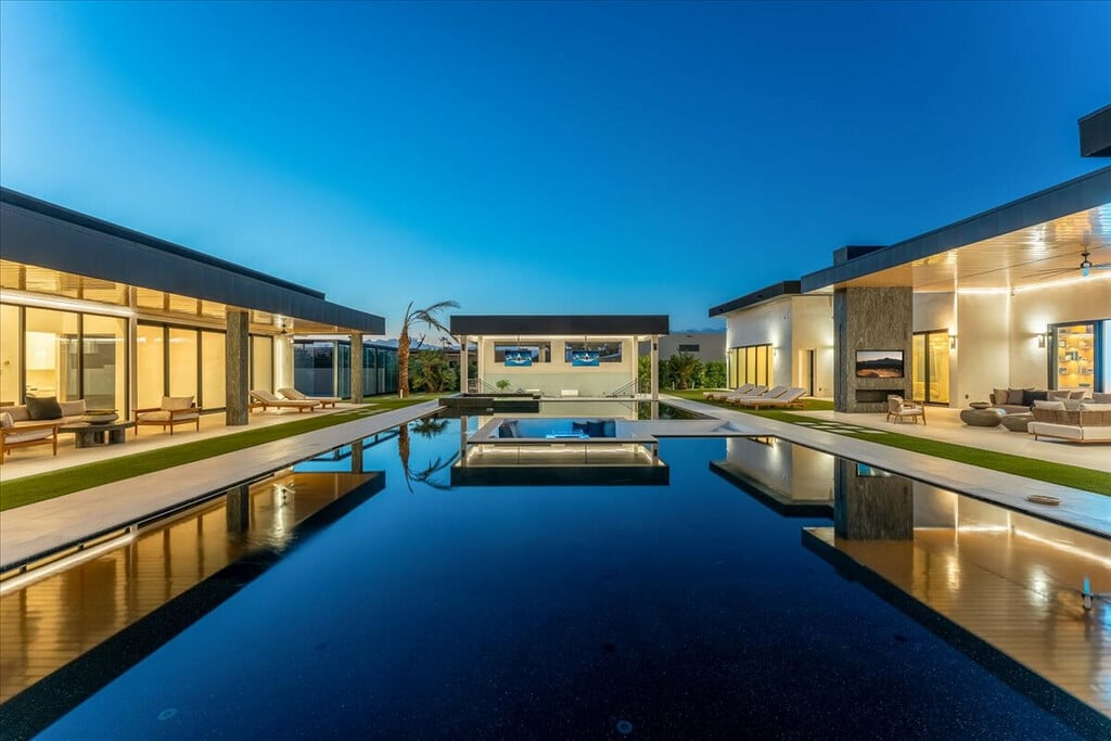 Developed by Modern Masterpieces and styled by Vesta Home, Elysium features seven bedrooms and 2,100 square feet of sliding smart-glass walls that erase the boundaries between indoor and outdoor living. Elysium is also a secure compound with an NBC-grade pressurized safe room, 13-point locking entry system, and a monitored perimeter with AI-enabled cameras quietly integrated into its lush desert surroundings.